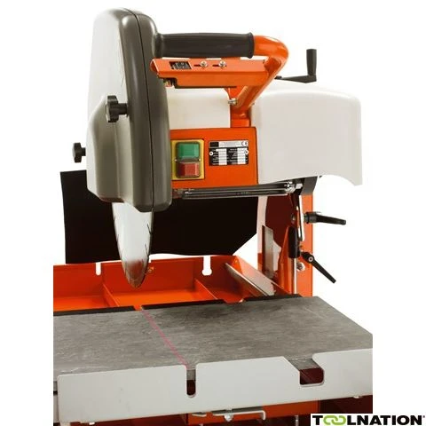 Universele tafelzaag met een uniek en uiterst stabiel mechanisme voor hoogteverstelling, dat in alle standen vergrendelbaar is. Max. zaagdiepte in bovenste stand is 230 mm door het materiaal om te draaien.